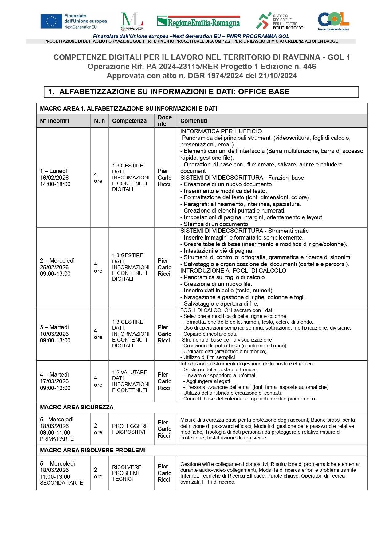 CORSI "IMPARA IL MESTIERE"